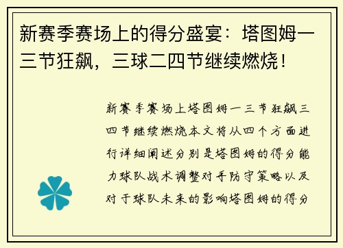 文章摘要:本文将全面阐述希尔德28分逆袭惊艳!4战狂轰20记三分,成为中心话题。首先会从希尔德的表现出发,分别分析其进攻、防守、团队合作和领袖能力,展现他在比赛中的多面功力。接着对他在媒体和球迷中引起的讨论进行探讨,探寻他为何成为中心话题。最后,通过对他表现的总结,展望他未来的发展和影响。1、希尔德...
