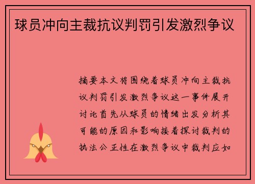 文章摘要:体育总监坎波斯质疑引发关注,引起了广泛的讨论和争议。本文将从四个方面对这一事件进行详细阐述。首先,我们将介绍坎波斯质疑的背景和原因。其次,我们将分析坎波斯质疑的影响和影响的原因。然后,我们将讨论这一事件的可能解决方案和改进措施。最后,我们将总结和归纳这一事件对体育总监职位和体育界的影响。1...